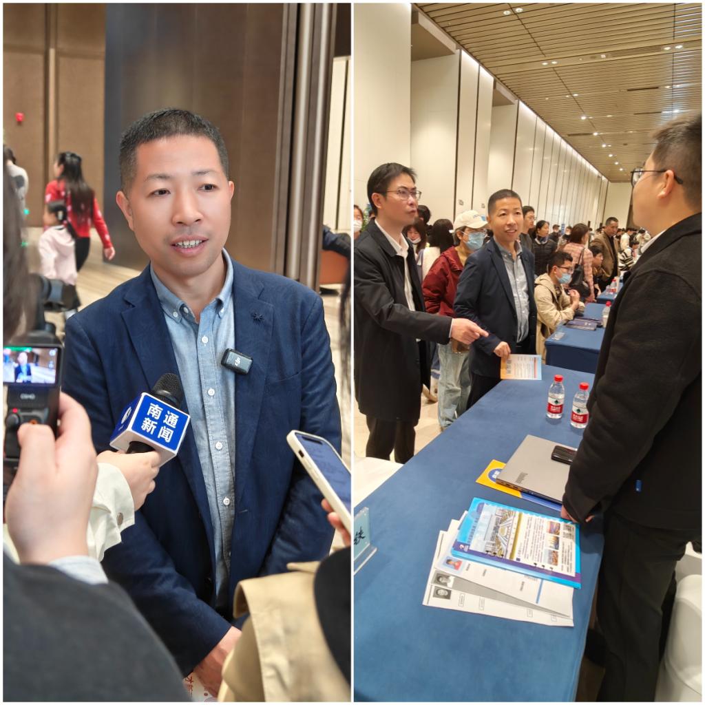 在第二届南通人才日暨新质生产力专场招聘会上,2026世界杯官方网址访企拓岗促就业专项行动小组成员与众多企业代表进行了深入的交流和洽谈。招聘会现场气氛热烈,求职者络绎不绝。期间,苟毅飞代表公司接受了南通新闻的专访,他详细介绍了公司的专业设置、人才培养、毕业生规模及现阶段就业情况,并诚挚邀请各企业单位莅临公司选聘毕业生。会上,专项行动小组成员还就企业的人才需求、校企合作模式等方面与企业代表进行了深入探讨,达成了多项合作意向并现场向企业精准推荐毕业生。