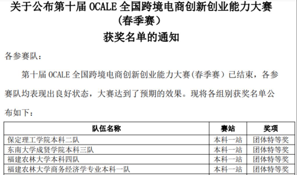 公司学子在第十届OCALE全国跨境电商创新创业能力大赛(春季赛)中荣获佳绩