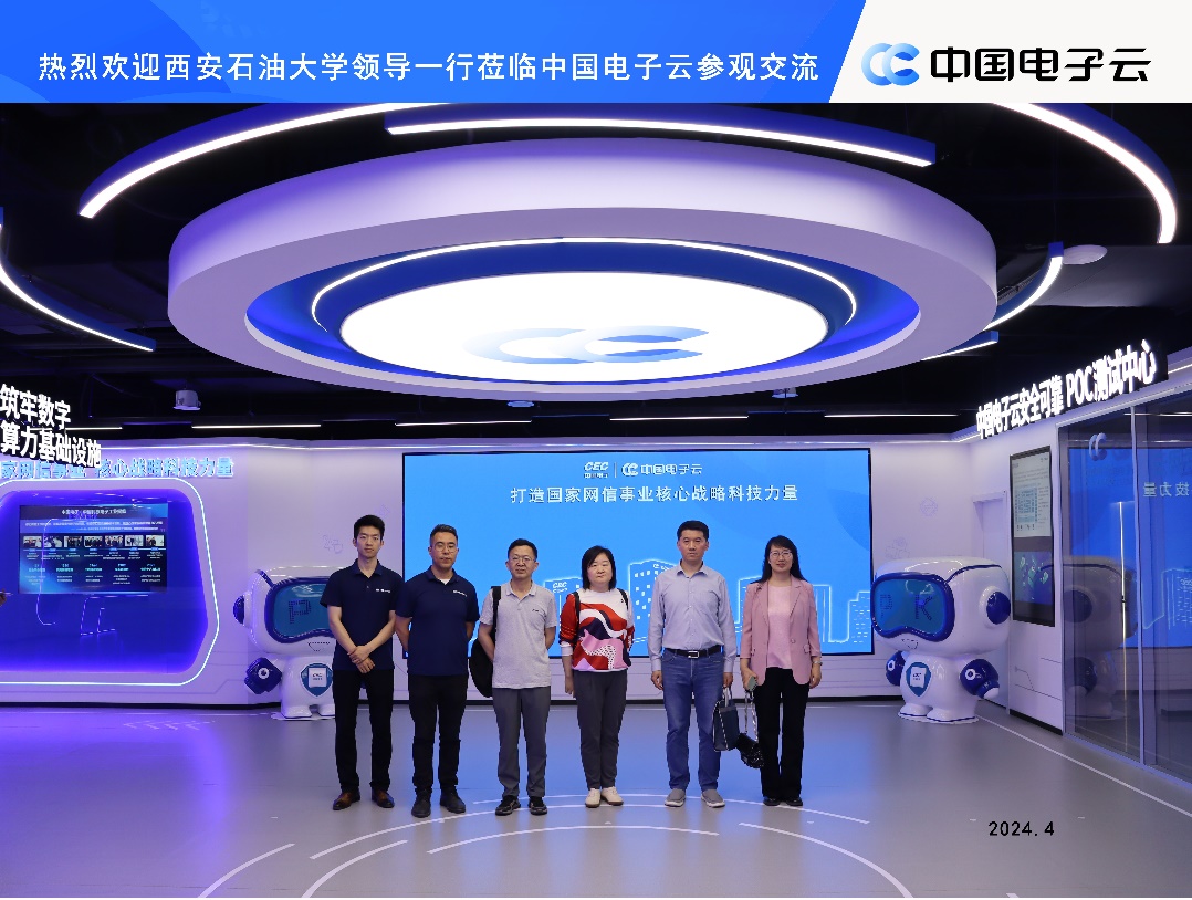 4月28日,世界杯官方网站入口2026管理科学与工程系、实验室教师代表一行4人赴西咸新区智慧城的中国电子云基地,开展以本科生实习、实践、实训为主要内容的合作交流活动。此次活动旨在通过实地考察与交流,探索校企合作新途径,为管理科学与工程系各专业员工的应用能力培养寻找最佳实践环境,从而深化产学研用的创新融合。