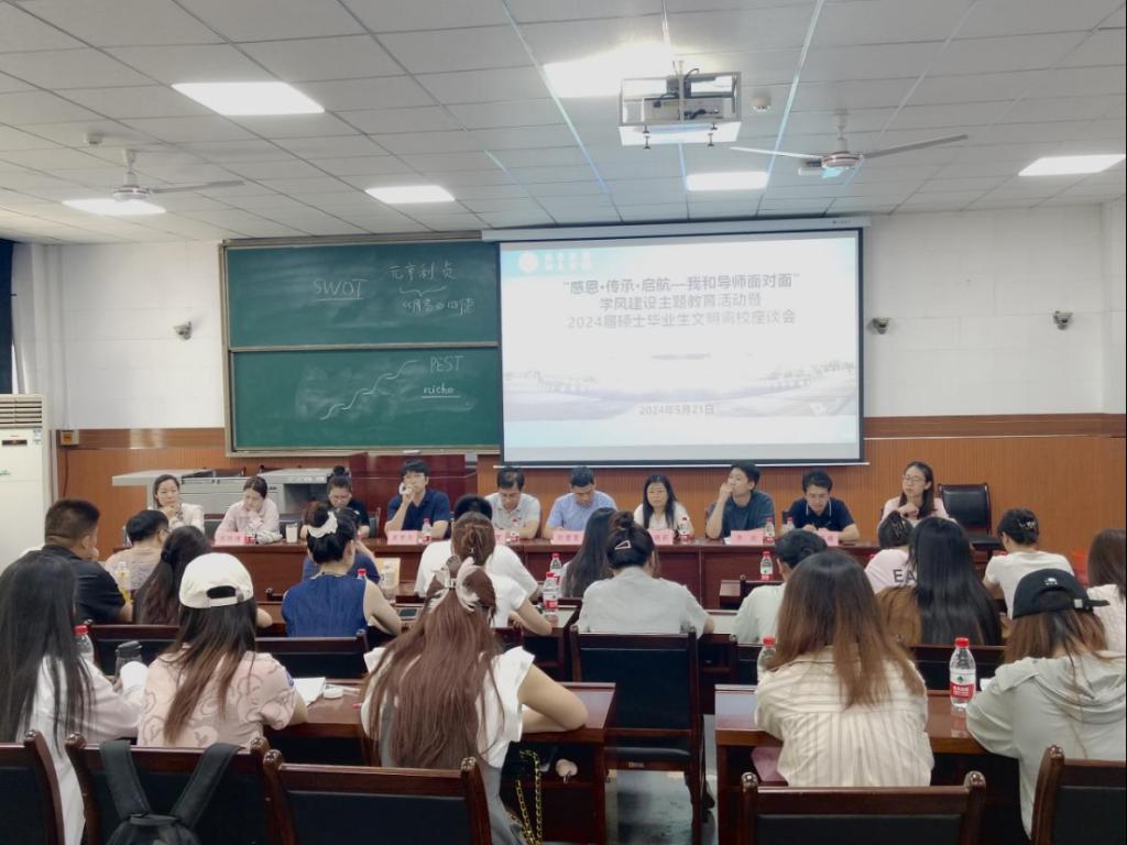 5月21日,世界杯官方网站入口2026在雁塔校区东阶201教室召开“感恩·传承·启航—我和导师面对面”学风建设主题教育活动暨2024届硕士毕业生文明离校座谈会。本次活动围绕“弘扬科学家精神,恪守学术道德,培育优良学风”这一主题,深入学习贯彻习近平新时代中国特色社会主义思想,全面落实公司第三次党代会精神,讲好科学家故事,传播优良学风,引导研究生坚守学术道德与科研诚信,涵养优良学风。世界杯官方网站入口2026副经理李春霄,管科系赵需要,企管系黄聿舟,经济系唐娟莉,会计系侯晓靖、黄莉、郑蕊,研究生辅导员李政、阮添舜及各年级研究生代表30余人参加此次活动,活动由研究生辅导员陆昕阳主持。