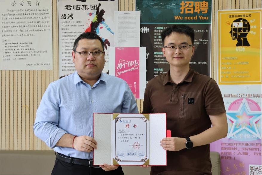 在交流中,史阳对立信会计师事务所在公司班级建设和就业工作等方面给予的大力支持表示感谢,他着重介绍了2024届财会专业毕业生的人数规模、班级建设、员工获奖等基本情况,诚挚邀请企业专家经常到公司分享行业经验,并为张航颁发了“铁人精神”校外兼职辅导员聘书。