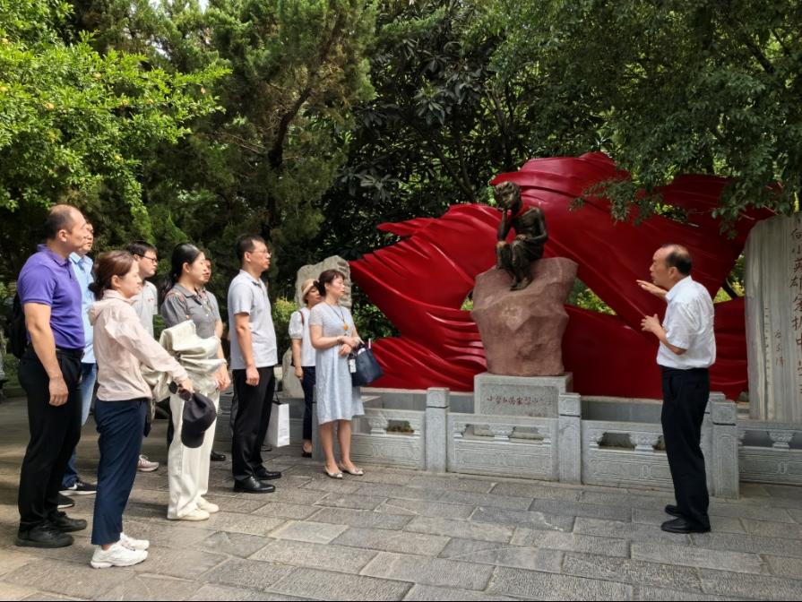 西安市莲湖公园是陕西省100处红色教育旅游地之一,是西安市首家廉政教育主题公园,也是隐于闹市的红色革命热土。大家在“见莲思廉,清风廉韵”的文化氛围中,依次参观了红莲丹心、莲子家训、莲语诗堤、莲韵清风四个主题文化区和莲湖红色记忆主题展览馆。在小萝卜头雕塑前,谈建勤详细介绍了“小萝卜头”宋振中的成长和革命故事,为大家讲述了一堂鲜活生动的党课。在中共西安情报处交通联络站奇园茶社遗址前,谈建勤要求大家要铭记先烈精神,传承红色基因,坚定教育初心,铸牢拒腐防变的思想防线。漫步在莲花盛开的园内,老师们还认真学习了张载的“横渠四句”、杨震的“四知拒金”、王阳明“优奖龙韬”等历史名言和文化典故,品味和感悟莲“廉”于景的独特魅力。