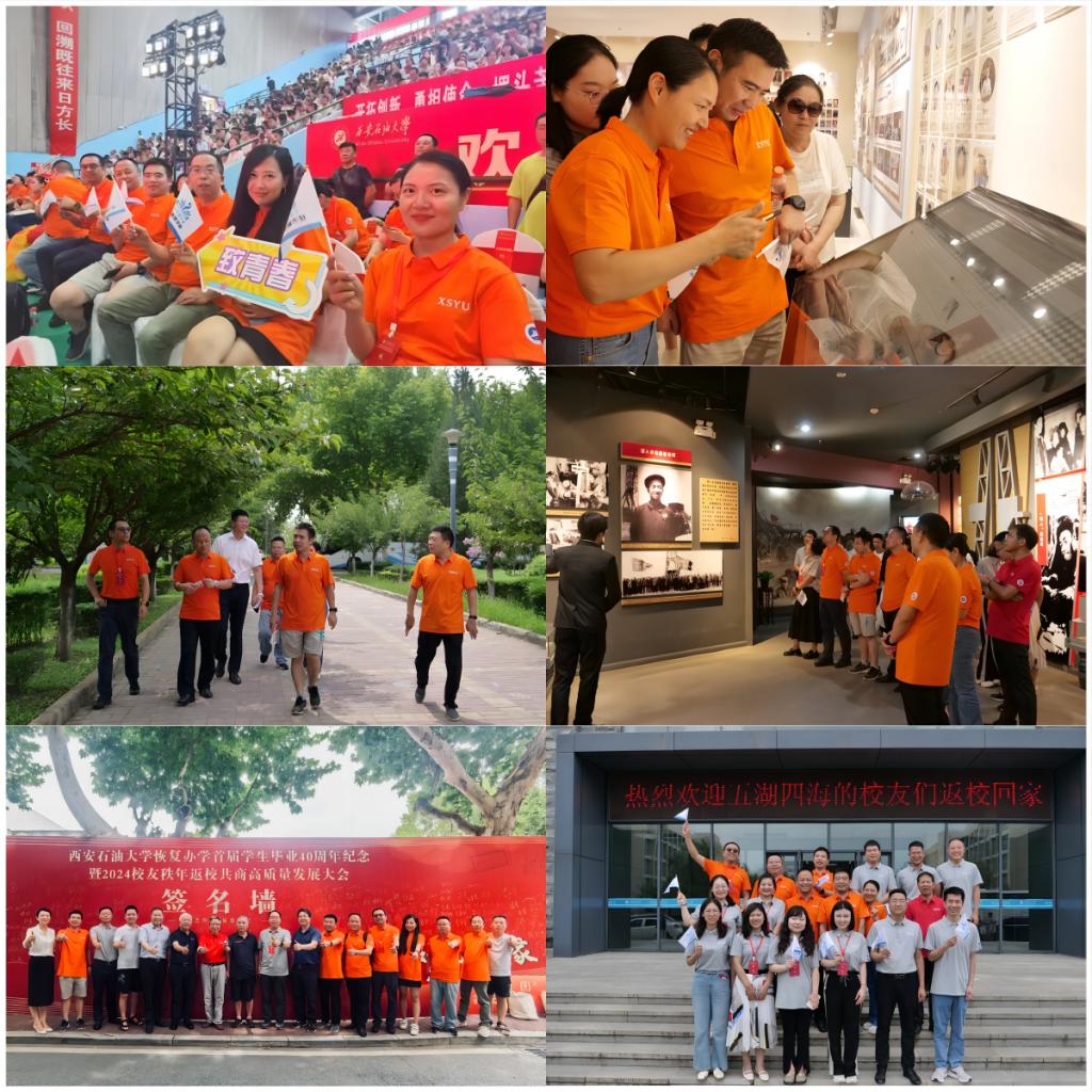公司领导班子、教师代表及秩年返校员工在雁塔校区忠实广场合影留念。
