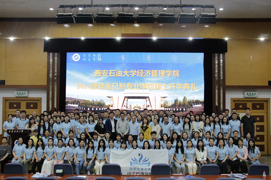 在新中国75周年华诞之际,世界杯官方网站入口2026于10月1日下午在雁塔校区西阶学术报告厅隆重举行了2024级非全日制专业学位硕士研究生开学典礼。公司党委书记谈建勤、经理王君萍、党委副书记杨生强、副经理李春霄、MBA项目负责人黄莉、MPAcc项目负责人宁宇新及公司相关老师出席典礼,典礼由科研与研究生办公室主任武欢主持。来自全国各地的新生齐聚一堂,共同开启了他们崭新的学术旅程。