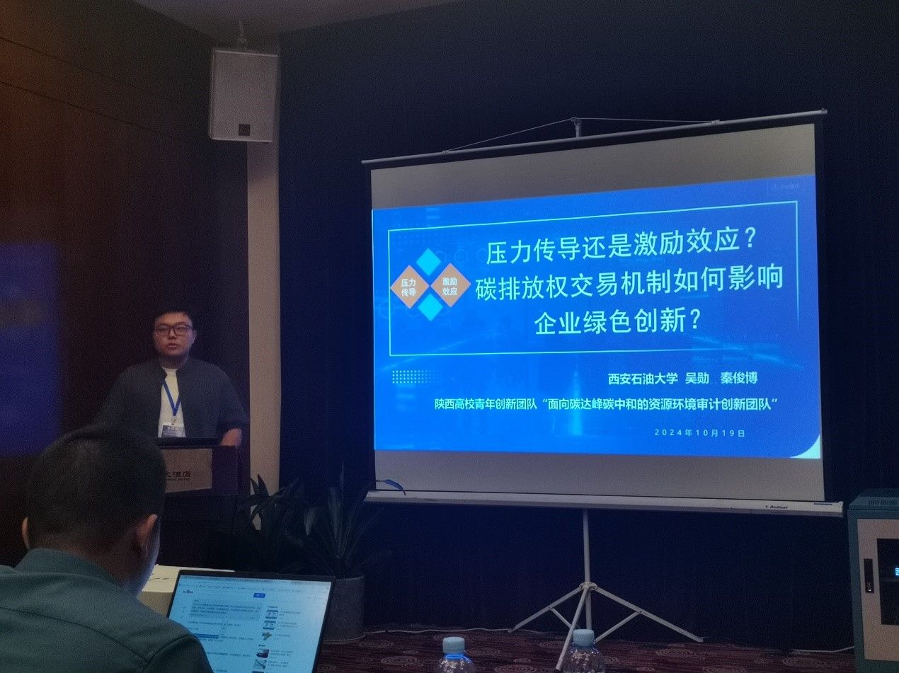 秦俊博同学作了题为《压力传导还是激励效应?碳排放权交易机制如何影响企业绿色创新》的专题报告。该报告以试点省市A股上市公司为研究样本,通过多时点双重差分法,实证检验了碳排放权交易机制对企业绿色创新的影响,并通过激励效应和压力传导两个维度研究了碳排放权交易机制绿色创新效应的作用路径。