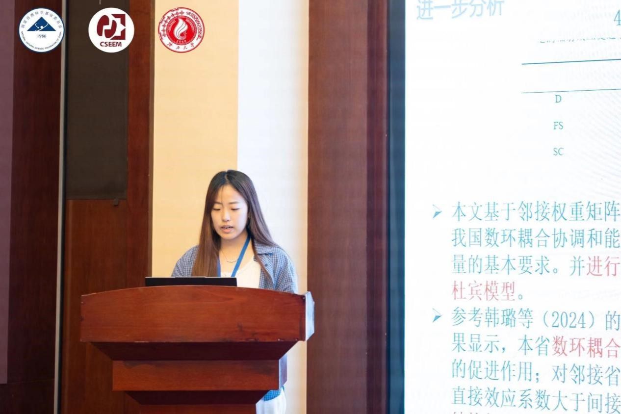 徐佳同学作了题为《数字经济与环境规制的耦合协调对能源结构低碳转型的影响》的专题报告。该报告采用2011—2021年中国30个省份的面板数据,通过双固定效应模型、中介效应模型及空间杜宾模型,实证检验了数字经济与环境规制耦合协调对能源结构低碳转型的影响及其传导机制。
