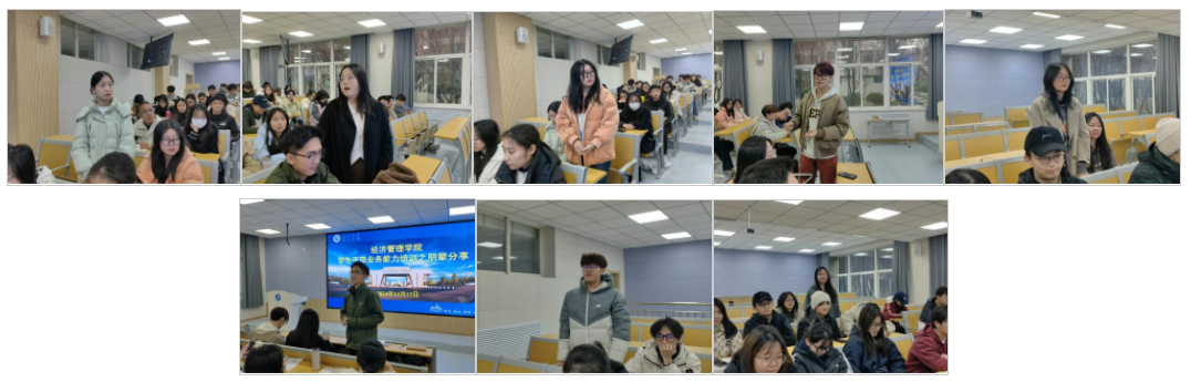 分享结束后,同学们积极提问,分享同学依次进行解答。商管2301班团支书提问:作为班委,有什么好办法能有效地激励整个班级团体?魏翔宇回答到:激励整个班级团体,关键在于增强团队凝聚力与激发个体积极性。可以通过设定共同目标,及时开展团队建设活动等增进同学们间的联系,促进形成积极向上的班级合力。商管2301班班长提问:组织班级活动中,遇到意见不合的情况应怎样处理?李冠宇回答到:应首先判断个人观点是否正确,其次应和和其他班委、班内同学心平气和地沟通,避免矛盾升级。此外,要给其他同学表达自己观点的机会,认真倾听各方意见,互相尊重,求同存异,以班级整体利益为重。商管2307班辅导员助理高恩尧提问:员工工作、班级工作及其他工作冲突时,应如何解决?徐顾铭回答到:当多件事情冲突时,应先从更紧急、更重要的事情做起,做好统筹规划和沟通协调。同时,应注重人际关系的维持,在必要时可以寻求帮助。
