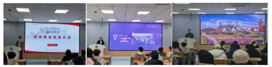 活动伊始,李夏凝介绍本次活动的目的及意义,并对三位分享同学进行简要介绍。随后,三位同学依次进行展示。李冠宇从从学风建设、科研竞赛、班级建设、员工工作和个人思考方面进行讲述,强调同学们要意识到班级干部要在老师处代表同学,在同学处代表老师,应注意个人言行,起到上传下达的作用,锚定责任,切实为同学们做工作。魏翔宇从责任中成长、不断提升自身能力和平衡学业与工作三个方面展开分享。第一,提醒同学们应做好时间与精力管理,包括定期反思工作、进行时间块划分、依据实际情况及时弹性调整工作计划等;第二,成为团队的“润滑剂”,学会倾听与沟通的艺术;第三,通过明确战略规划与优先级管理、强化团队协作效能与领导力发展和优化时间资源配置与心理调适策略三点做好工作与学习的平衡。徐顾铭从学业为本,实干为纲;以心求精,用爱凝聚;支部建设、致诚致公;立足班级,奉献社会四个方面提出一些具体实施方案,如通过搭建线上社区平台,让同学们可以自由发声,促进班级建设进一步完善;形成良好学习氛围,以比学赶帮超的态势加强班级同学专业知识的提升、科研竞赛成果的累积等。