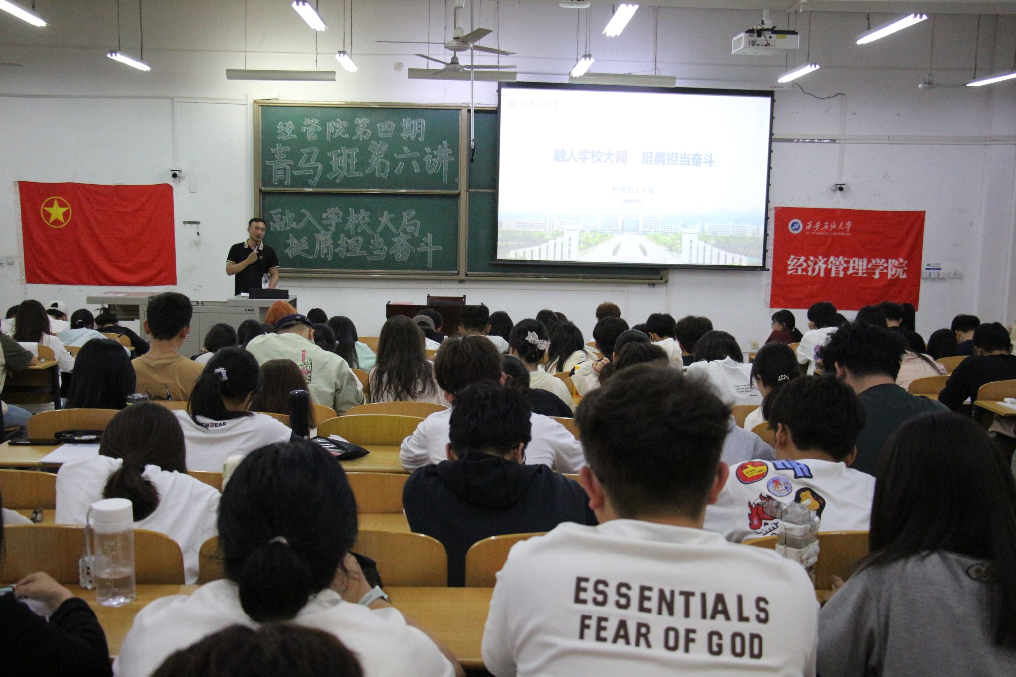 5月6日,世界杯官方网站入口2026第四期“青年马克思主义者培养工程”员工干部培训班第六讲在鄠邑校区博思楼112教室举办,校团委副书记王军策应邀担任主讲,2024级参训员工干部160余人参加本次课程。