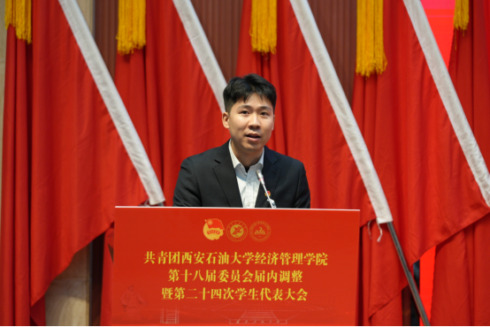 公司党委副书记赵纪飞代表公司党委,向校团委一直以来对公司团学工作的指导和兄弟院系的支持表示衷心感谢,向即将卸任的团学骨干们致以崇高的敬意,向出席本次大会的全体代表以及新一届团学骨干们致以最热烈的祝贺。本次大会不仅是一次薪火相传的组织调整会,更是一场凝聚青春力量、共话未来发展的奋进动员会,他向新一届团学骨干和全体代表提出三点期望。第一,以信念为舵,做思想引领的“排头兵”;第二,以服务为基,做同学信赖的“贴心人”;第三,以实干为要,做团学发展的“实干家”。希望大家以此次大会为新的起点,牢记嘱托、不负韶华,以理想者、担当者、吃苦者、奋斗者的姿态,在服务同学、奉献公司的过程中实现个人成长,在强国建设、民族复兴的伟大征程中书写青春华章!
