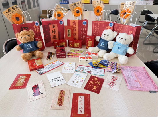 会后,公司领导老师们为同学们发放了精心准备的“逢考必过”考研慰问大礼包。礼包内含印有公司院徽的文具套装、暖宝宝、旺仔棒棒糖、纸巾、向日葵以及贴有“马到橙功”祝福语的橙子等暖心物品,寓意心想事“橙”、一路长“旺”、“纸”定高分、一举夺“葵”,承载着全院师生对考研学子的殷切期望与美好祝愿。收到礼包的同学们纷纷表示,这份心意让他们深切感受到来自公司的温暖与支持,也更加坚定了冲刺的信心。