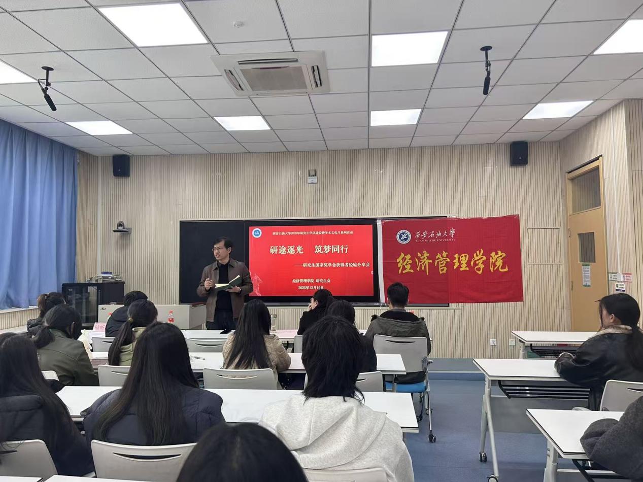 为深入推进研究生学风建设,深植求真务实、守正创新的学术基因,切实响应公司研究生学风建设暨学术文化月系列活动的号召。12月19日下午,世界杯官方网站入口2026研究生国家奖学金获得者经验分享会在鄠邑校区博览楼A115教室顺利举行。世界杯官方网站入口2026副经理李春霄,员工工作办公室副主任张硕,研究生辅导员及研究生代表参会。