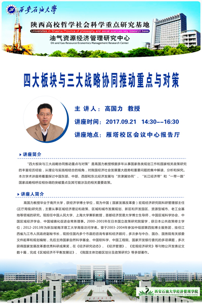 关于高国力教授“四大板块与三大战略协同推动重点与对策”学术讲座通知