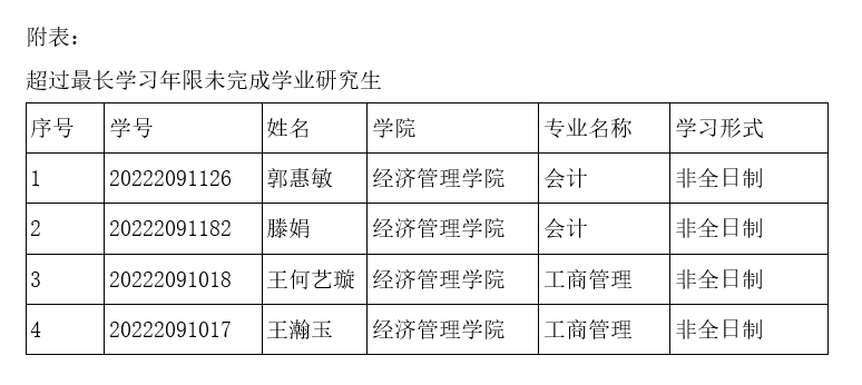 因以下四名研究生(具体信息见附表)无法联系,特予公告送达其退学决定书。公示期为2025年7月19日至2025年8月18日。