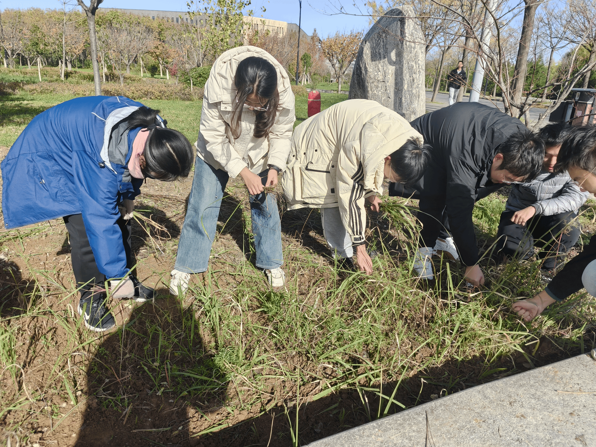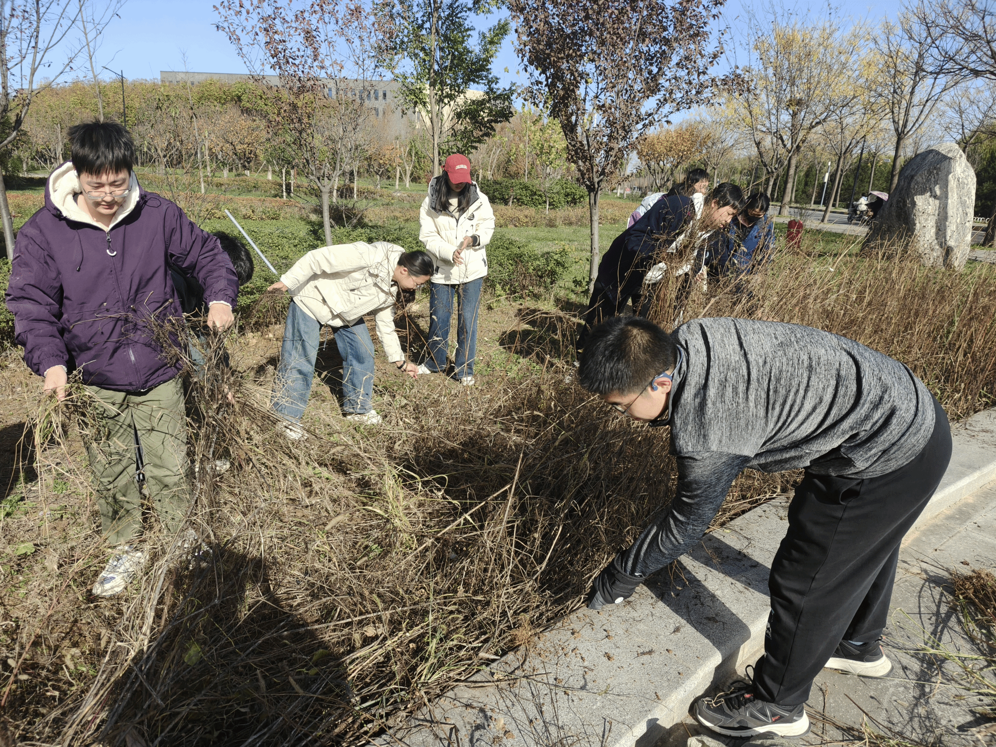 活动现场,碧空如洗,温暖的阳光洒落在劳动教育基地的每一寸土地上,入党积极分子齐聚现场,热情高涨、干劲十足。本科生低年级党支部书记张蒙详细讲解了劳动任务、工具使用方法和注意事项后,大家迅速分组、分工协作,开启这场劳动之旅。有的同学手持锄头、铁锹,深耕土地,将板结的土壤翻松,一锄一铲间,打破土地的“沉睡”,为来年开春种植做准备,每一次用力挥动工具,都伴随着泥土翻动的“簌簌”声,奏响劳动乐章的前奏;有的同学专注于清理基地里的杂物与杂草,弯腰俯身,细致甄别,拔除丛生的杂草,拾起散落的石块、枯枝,让基地环境逐渐整洁有序,还原土地纯粹面貌,守护这片育人田园的“净土”。