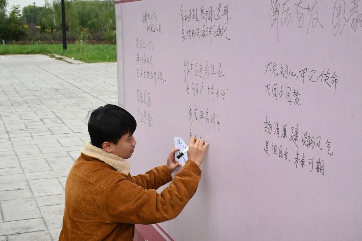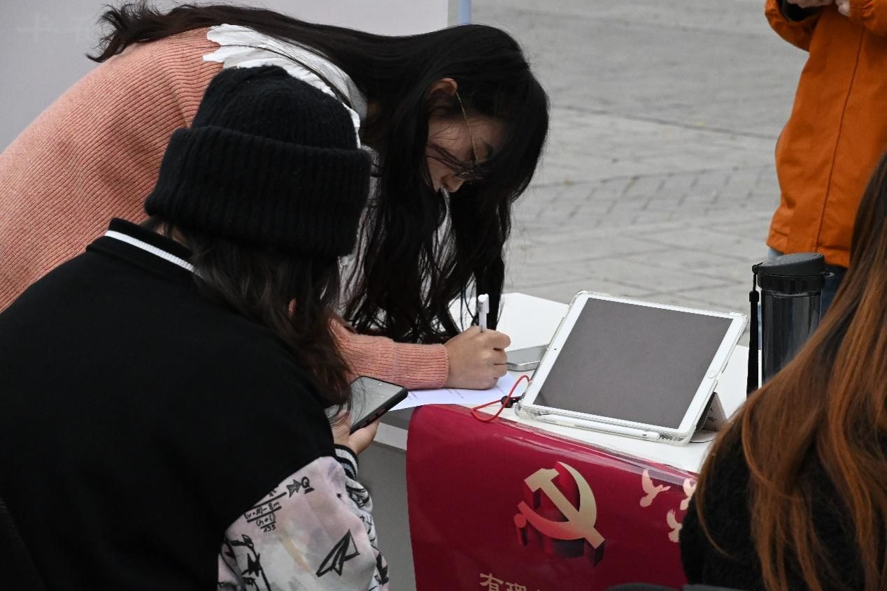 团队成员需根据试题要求现场构思标语献礼党的二十大,并在终点展板写下祝福语。中华民族的伟大复兴是一代又一代中国共产党人义无反顾肩负起的历史使命,我们有太多的情感想表达,有太多故事想讲述,有太多的话想对党说,因此本环节结合新中国成立以来的历史性成就和党的二十大热点内容,让各位党员同志用文字抒发对党和国家的热爱之情。